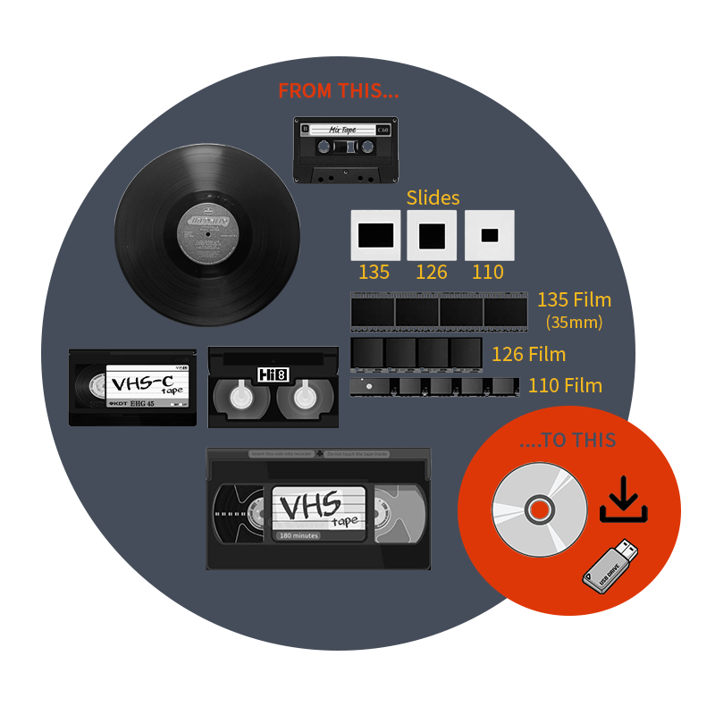 Are your old family photos, negatives, or audio/video cassettes collecting dust and becoming harder to access as old, obsolete technology becomes difficult to find? With our digitization services, you will be able to: